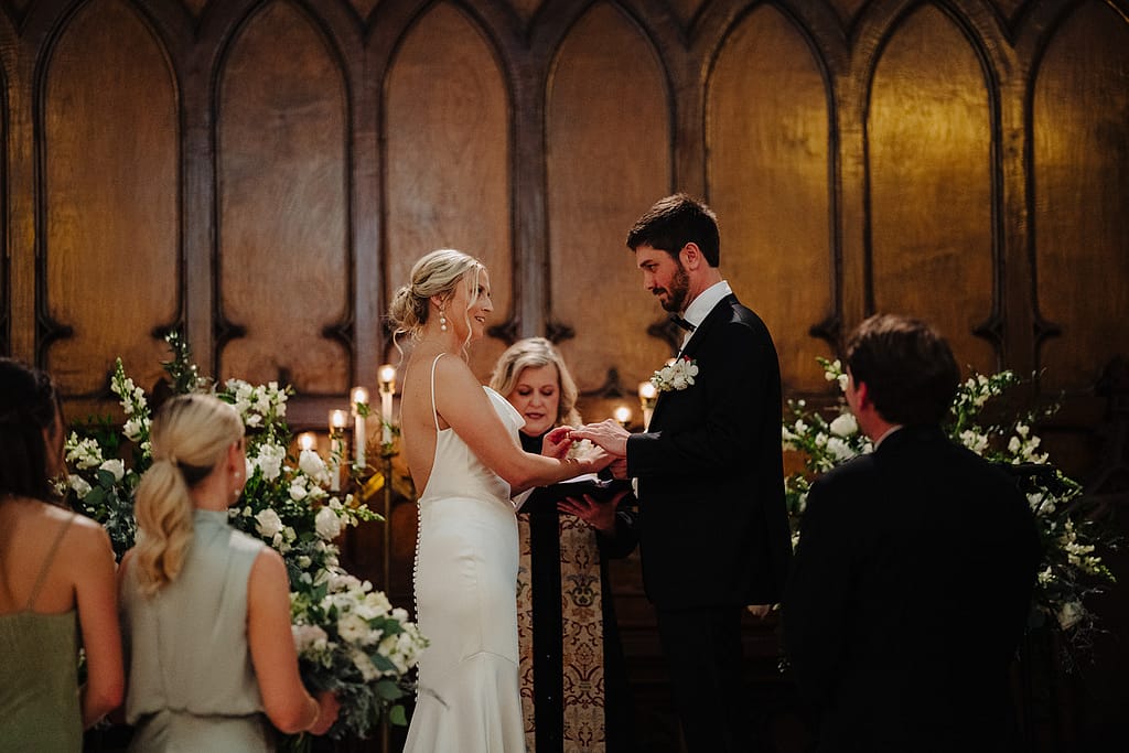Hannah et George avancent dans ce moment sans artifice : un sourire, une main qui se serre, une respiration avant de prononcer les vœux. Ce sont ces instants-là que je cherche à photographier — ceux qui racontent la journée avec simplicité et vérité.