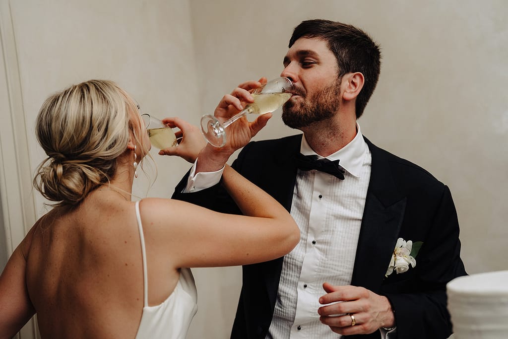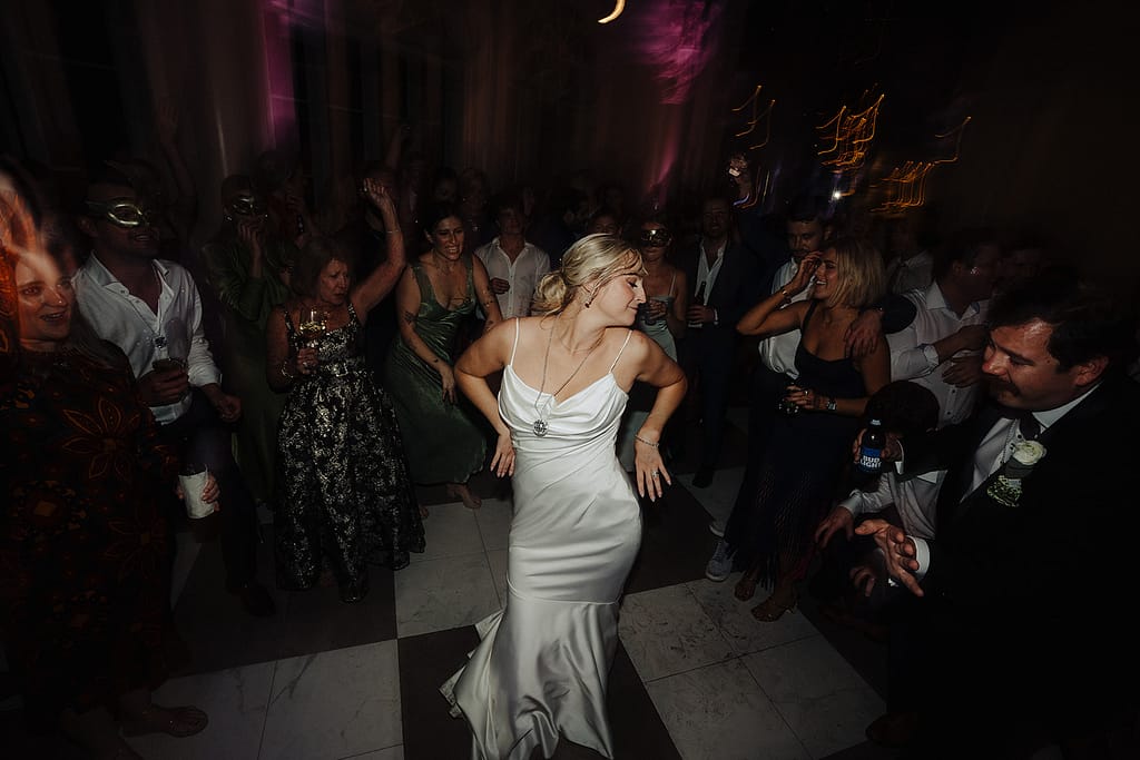 La réception prolonge cette dynamique dans une ambiance élégante, au Marché. La lumière, les échanges, les éclats de rire… et quand Hannah et George prennent la piste de danse, leur complicité entraîne tout le monde dans une soirée chaleureuse, photographiée sur le vif.